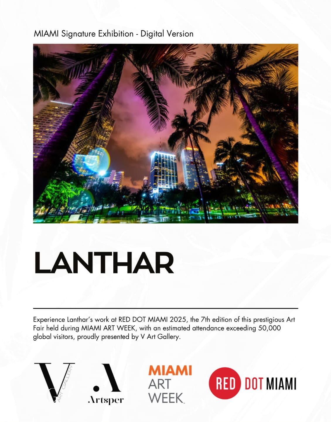 I am pleased to announce that I will be exhibiting my work at RED DOT MIAMI 2025 December 3 – 7, as part of the prestigious Miami Art Week. Although I will not be present in person, my work will be showcased digitally as part of the Miami Signature Exhibition.